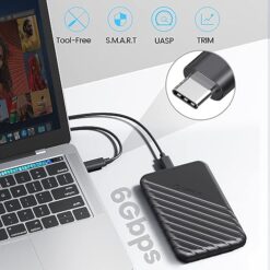- 【5Gbps with UASP Accelerated】 This 2.5″ USB C enclosure designed with USB 3.1 type-c interface, supports 6Gbps max transfer speed and UASP accelerated transmission protocol, 70% Faster than conventional USB 3.0 when connected to a computer that also supports UASP【USB-C to USB-A Cable included】