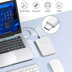 ORICO USB C Hard Drive Enclosure with USB C to C Cable for 2.5 inch SATA SSD HDD 6Gbps External Hard Drive Case Tool-Free with UASP for MacBook Pro Air,White (25PW1C-C3)