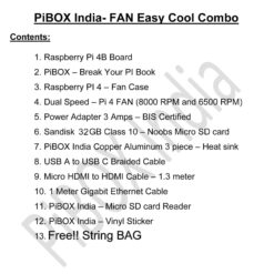 PiBOX India Raspberry Pi 4 8GB Easy Cool 8 Combo kit 4823W with Pi4 8GB, Pi4 Fan case, Dual Speed Fan, 32GB Noobs Card, BIS 3 Amps Charger, 3 Piece Heatsink, HDMI Cable and Accessories
