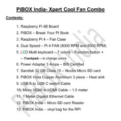 - [Dual speed Fan Case and Noobs 32GB] PiBOX India– Break Your PI Book, Raspberry PI 4 – Dual speed Fan with case, Power Adapter 3 Amps – BIS Certified, Sandisk 32 GB Class 10 NOOBS microSD card, LED Multi function keyboard