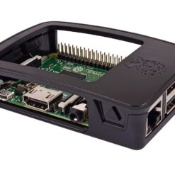 3. Black coloured enclosure with removable lid and sides {GPIO side and
